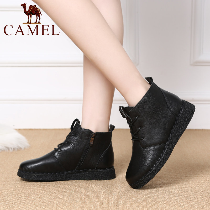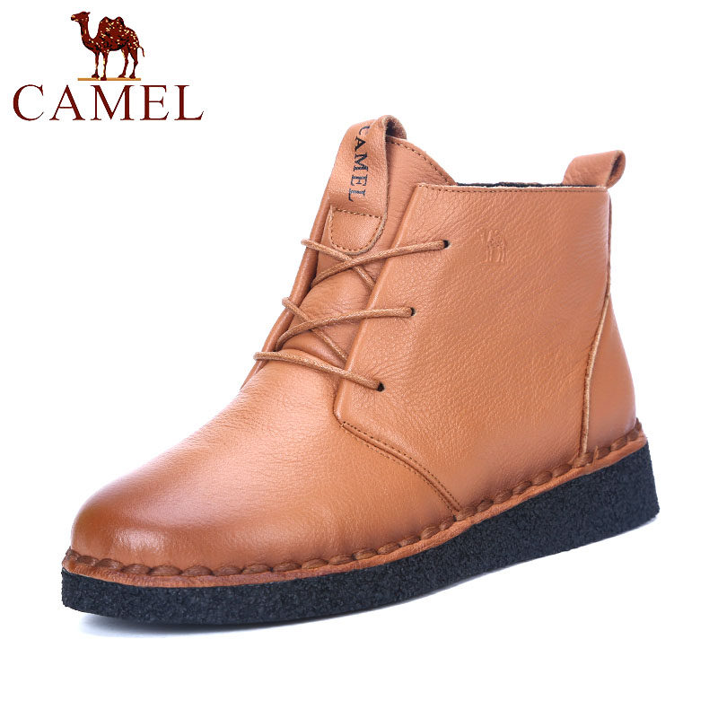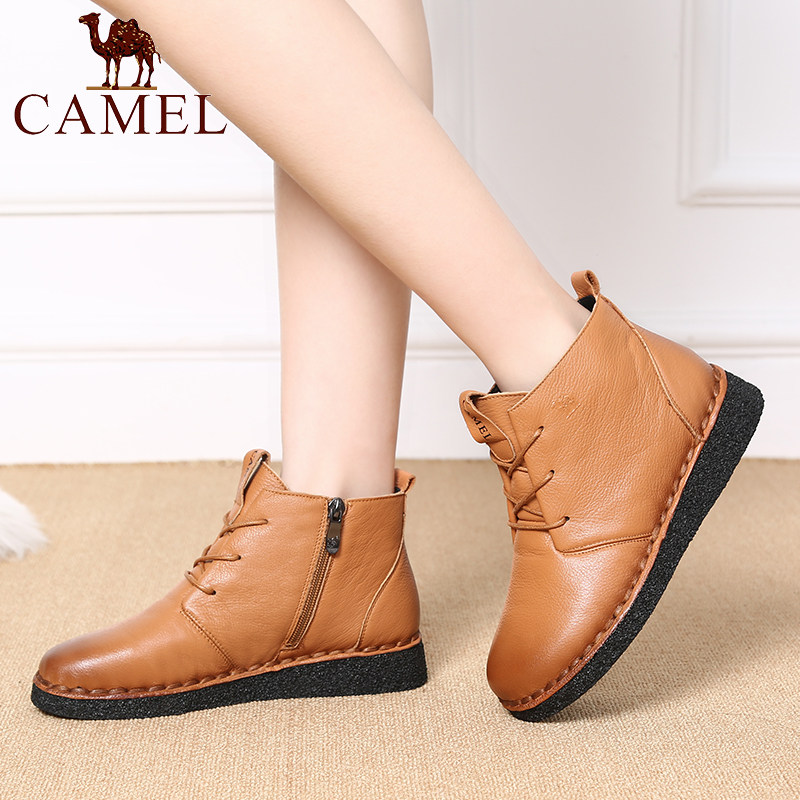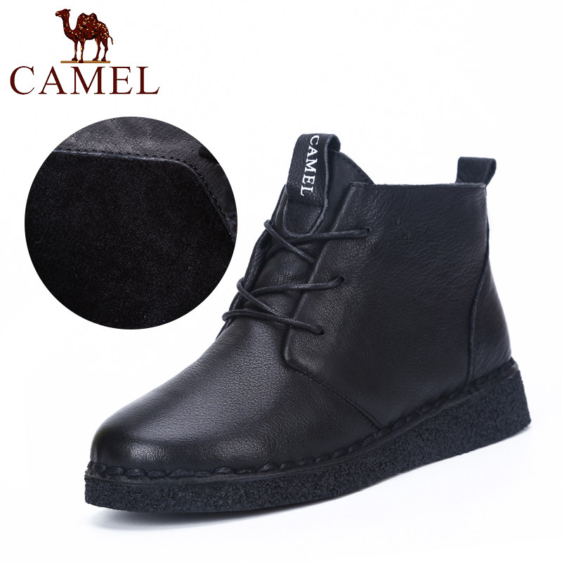 Camel camel women's shoes 22 winter new plush short boots British warm boots genuine leather Korean women's boots