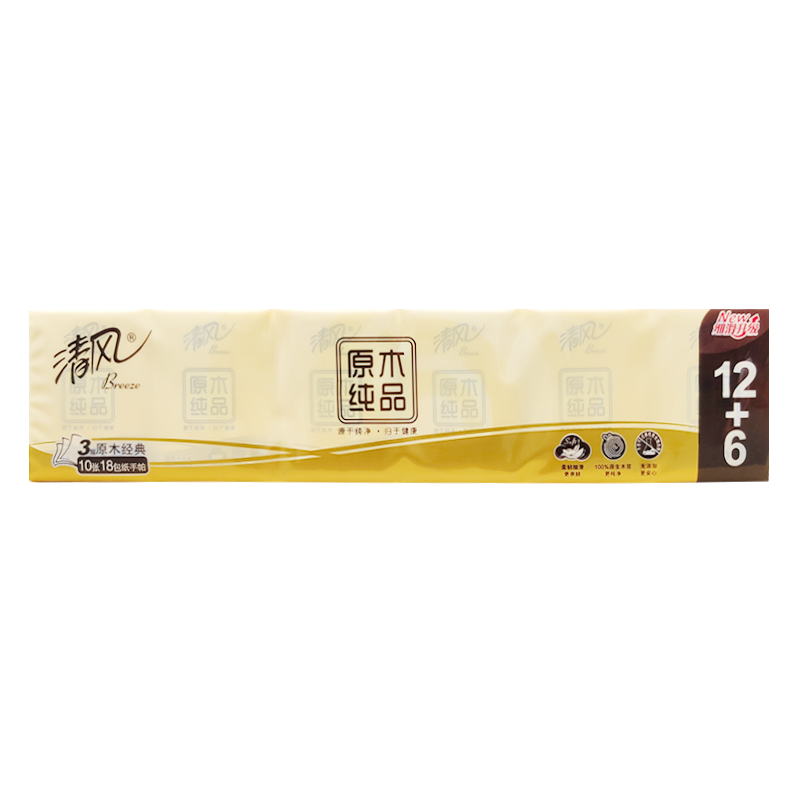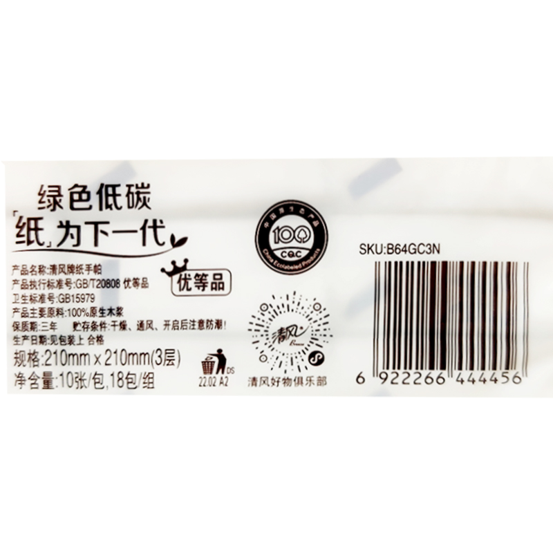Qingfeng B64GC3 log pure product 3 layers 12 6 handkerchief paper 18 packs a whole box of 20 packs 360 small packs