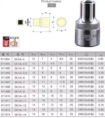 Jieke socket Jieke 1 4 socket Jieke 1 4 inch socket wrench socket Extended socket SK1 4-7 SK1 4-8 10