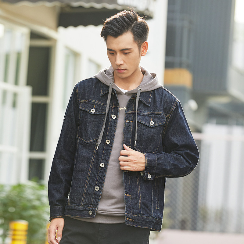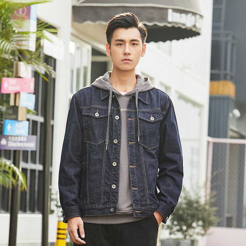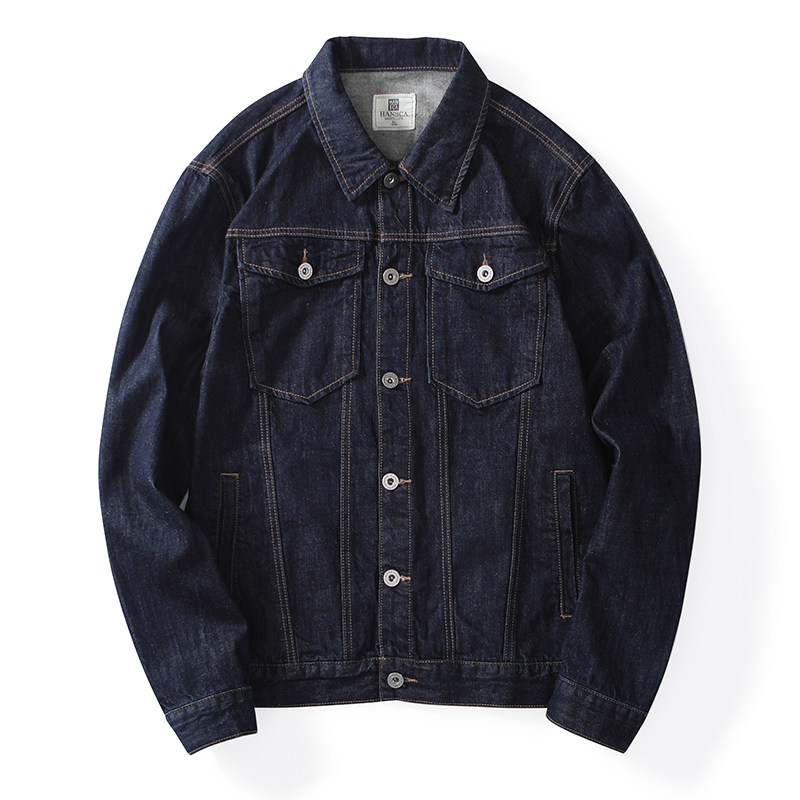 Hanska Spring Autumn Season Black Cowboy Jacket Male size Loose Repair and Antique Youth Denim Jacket Tide