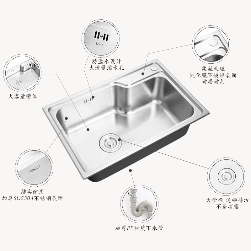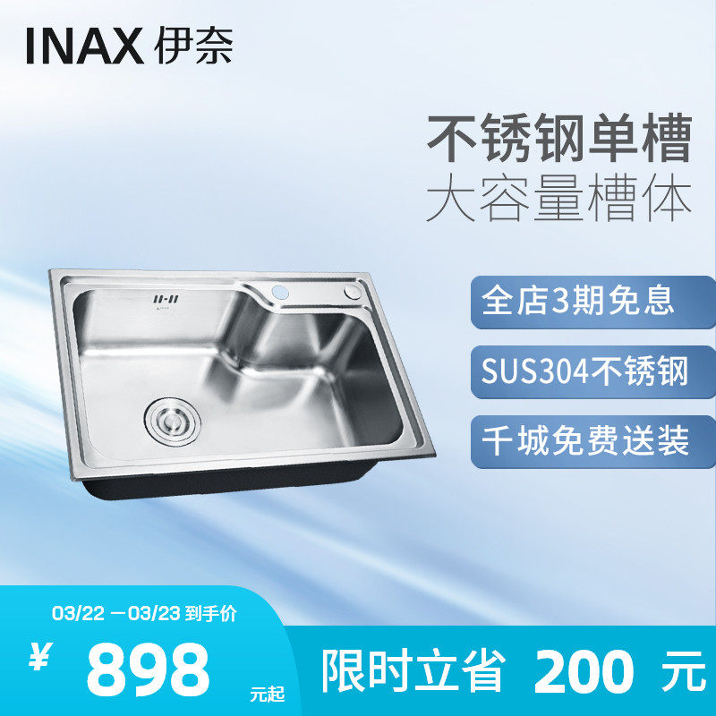 INAX Japan Inai Sink Single Tank Thickened 304 Stainless Steel Sink Kitchen Wash Basin Dishwashing Sink FFX108