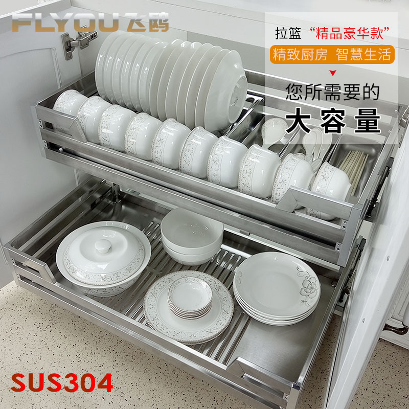 Custom 304 stainless steel double drawer cabinet pull basket seasoning basket kitchen overall cabinet tool dish basket custom