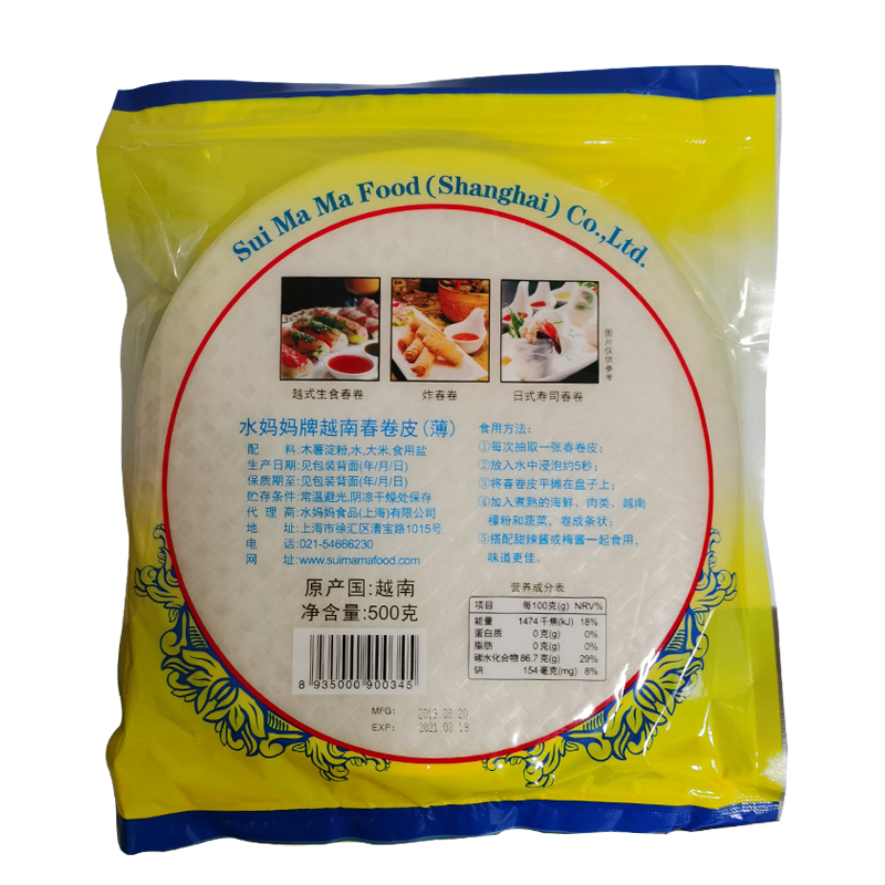 Water mom thin spring roll leather 500g Vietnamese spring roll leather transparent rice paper leather sushi thin pie leather crystal spring cake