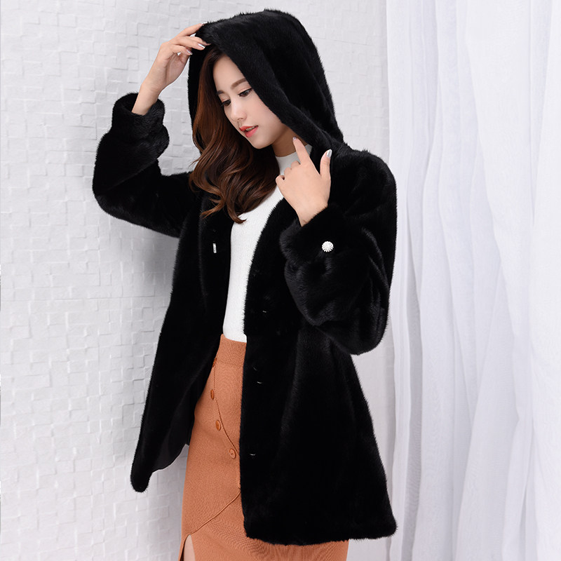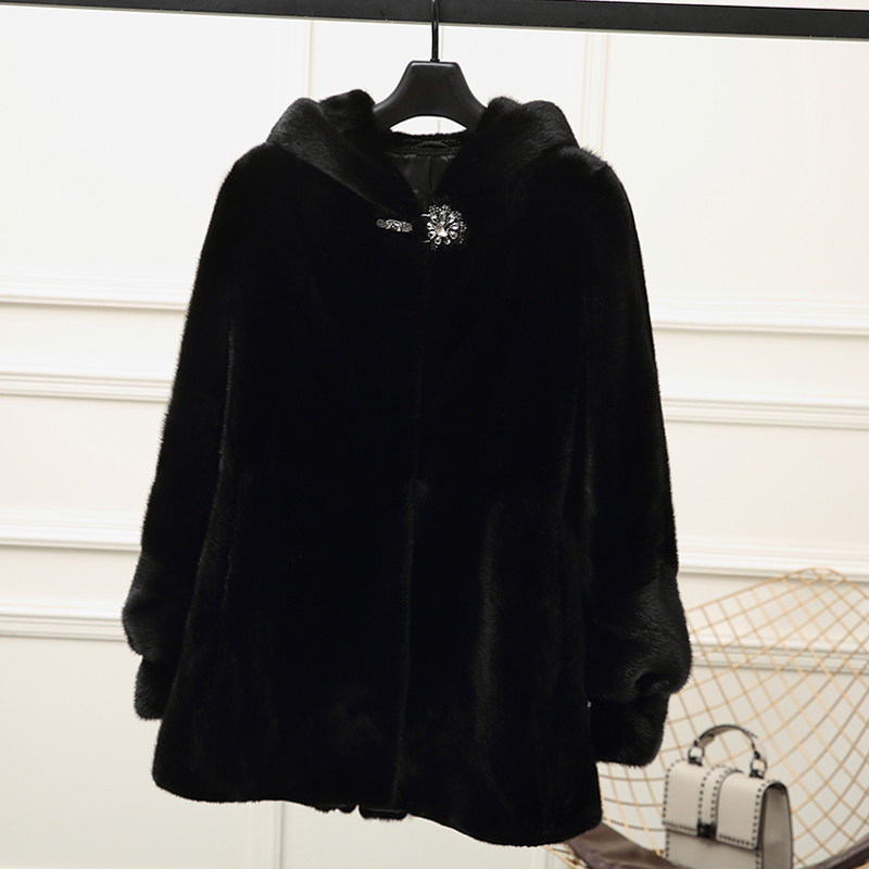 Mink coat women's whole mink hat long version 2021 winter new mink fur coat pile sleeve wave swing