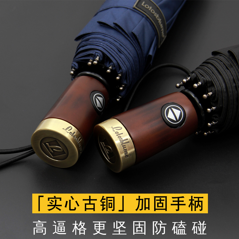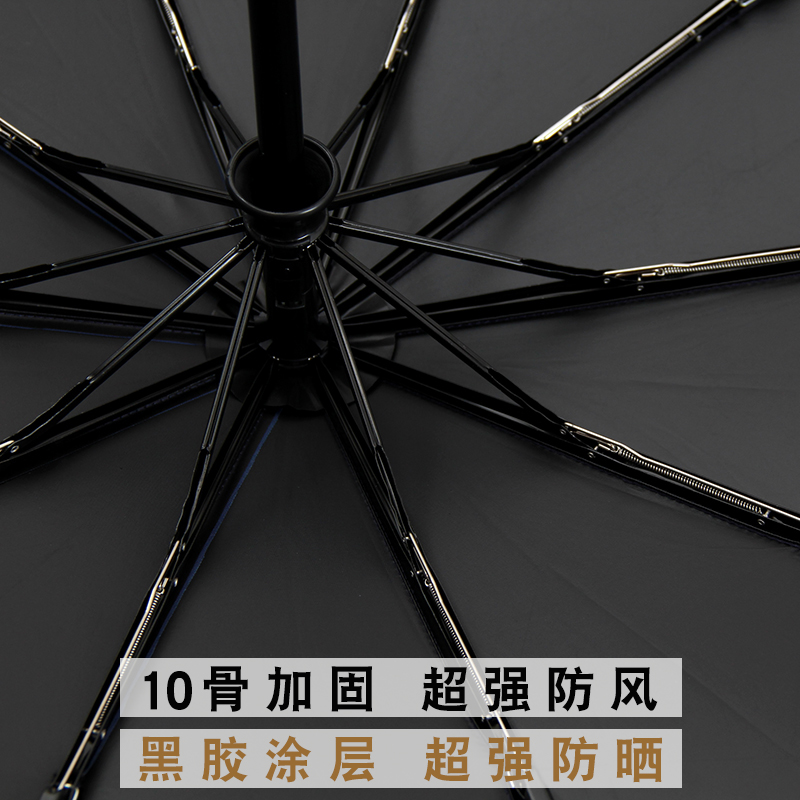 German Quality 10 Bone Super Super Windproof Business Sunny Umbrella Three Fold Male Full Automatic Umbrella Black Gum Super Sun Protection-Taobao