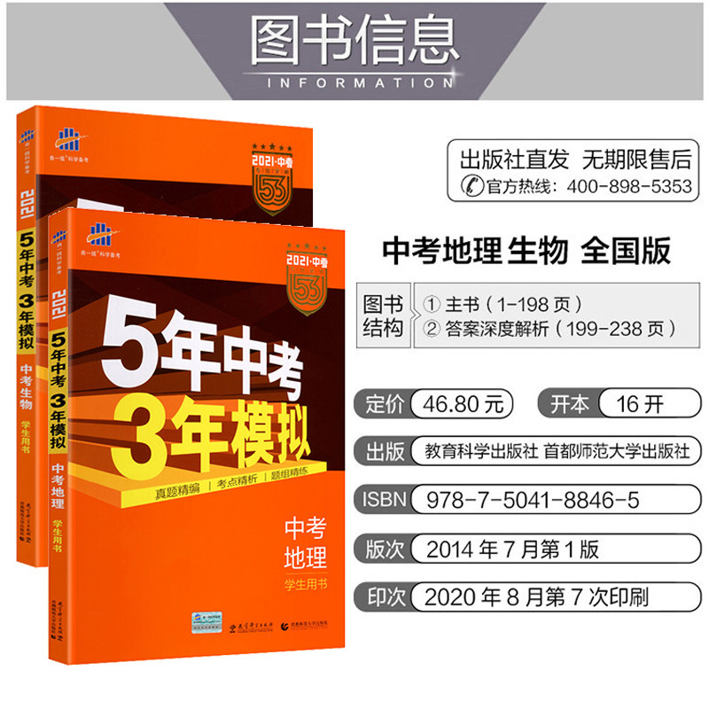 2021 new edition) five years three years simulation biogeography five three high school entrance examination geography biology examination 2 this junior high school data human education edition contains 2020 high school entrance examination papers the whole volume of geography biology total review