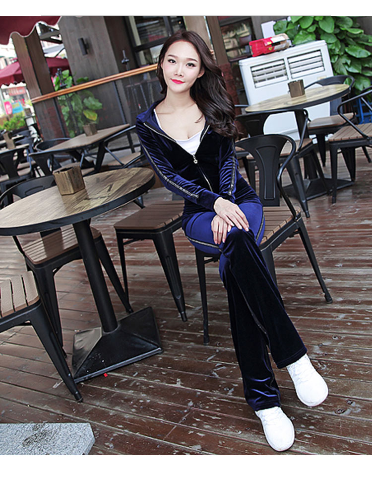 2019 spring and autumn new trendy Korean version of gold velvet sports suit women's fashion slim thin casual clothes two-piece set