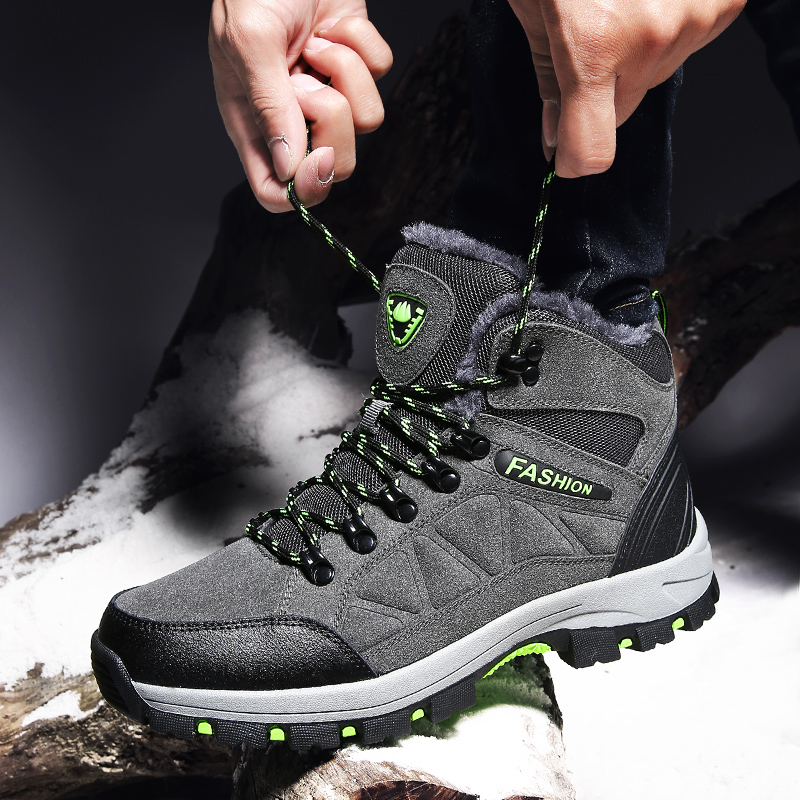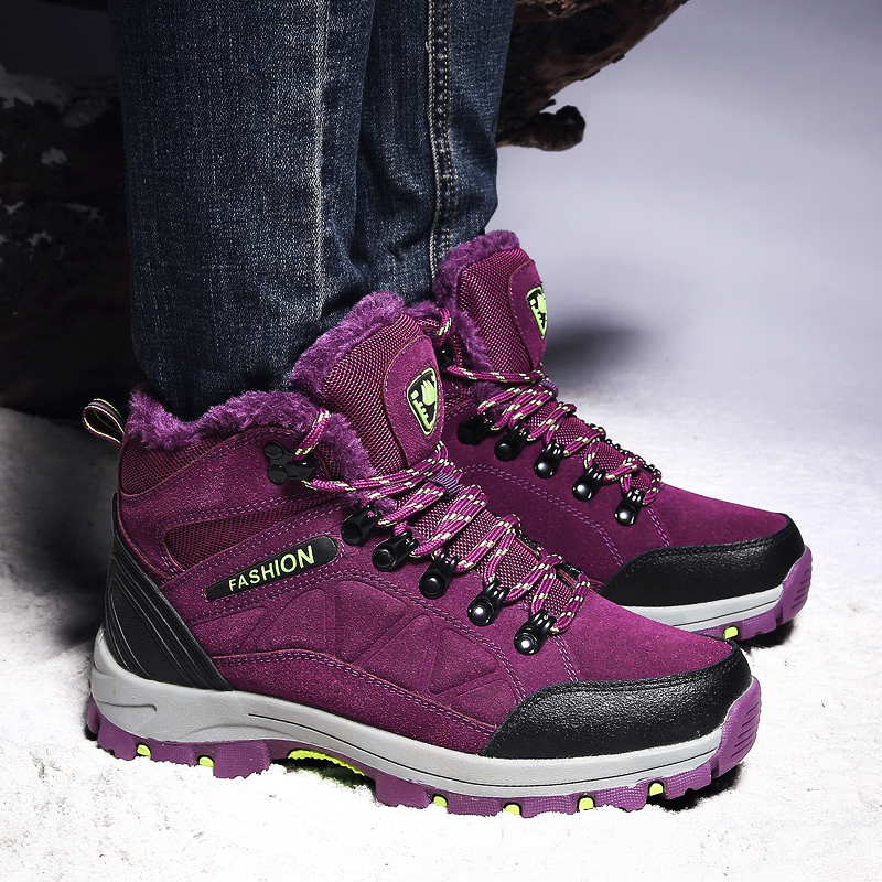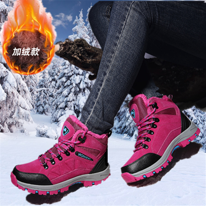 Outdoor thickened high-top hiking shoes for men and women winter sports hiking snow boots non-slip plus velvet warm travel cotton shoes