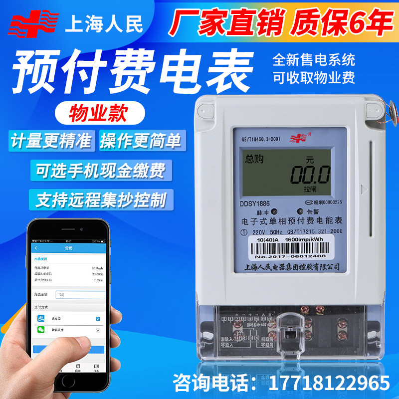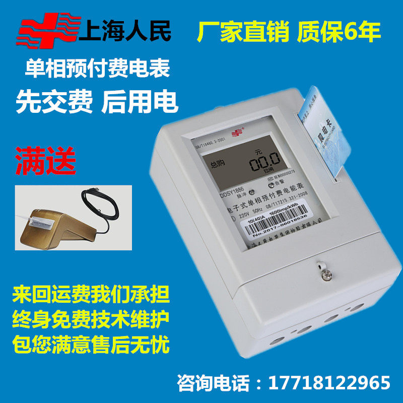 Shanghai people's single-phase prepaid electricity meter electronic plug-in card electricity meter LCD 220V household smart electricity meter