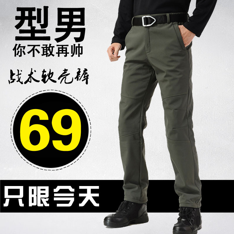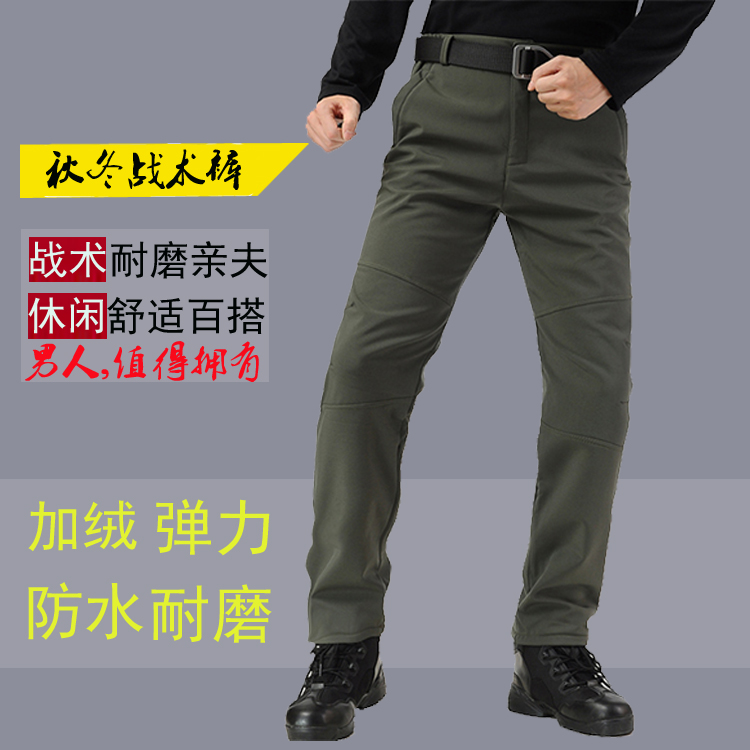 Outdoor tactical pants men's autumn and winter elastic breathable multi-pocket overalls men's plus velvet thick soft shell assault pants large size