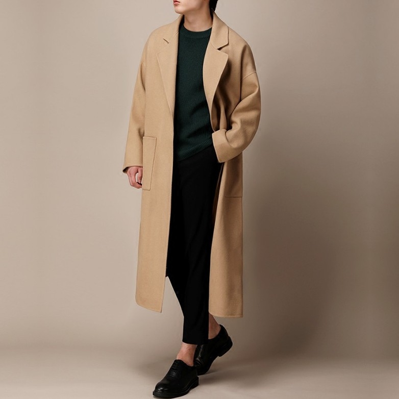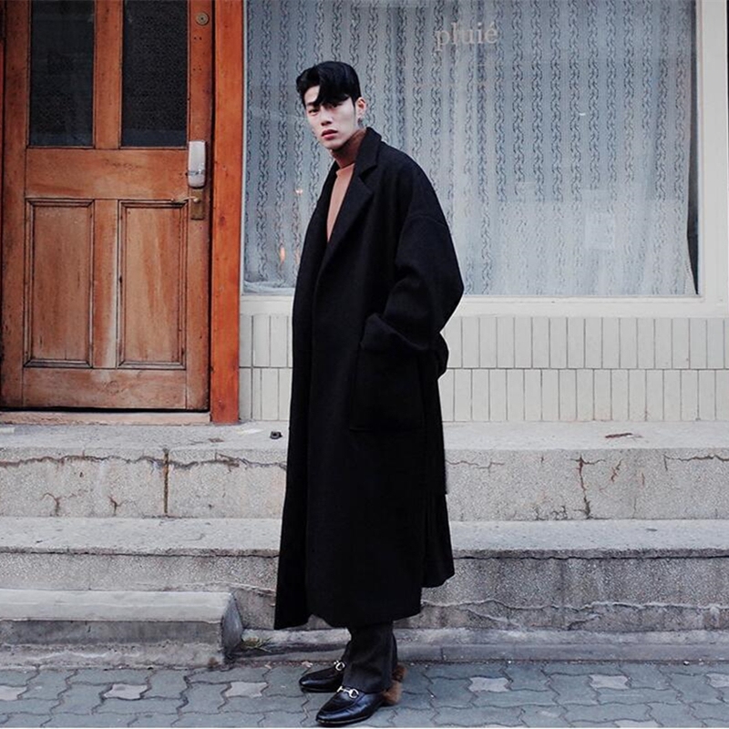 The new men's wool coat Men's long version of the knee-length winter cashmere trench coat loose trend handsome British wind coat
