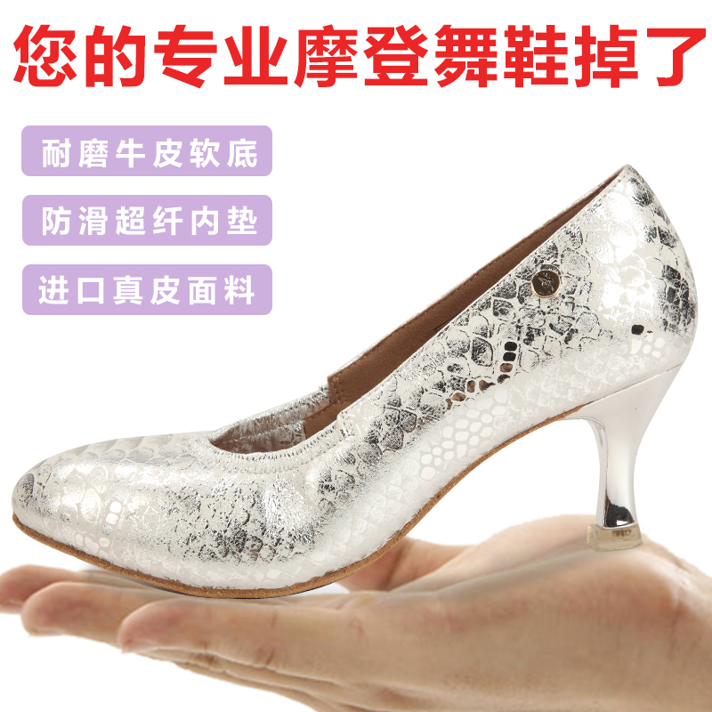 British ADS waltz women's modern dance shoes new dance shoes imported silver leather A5013-11