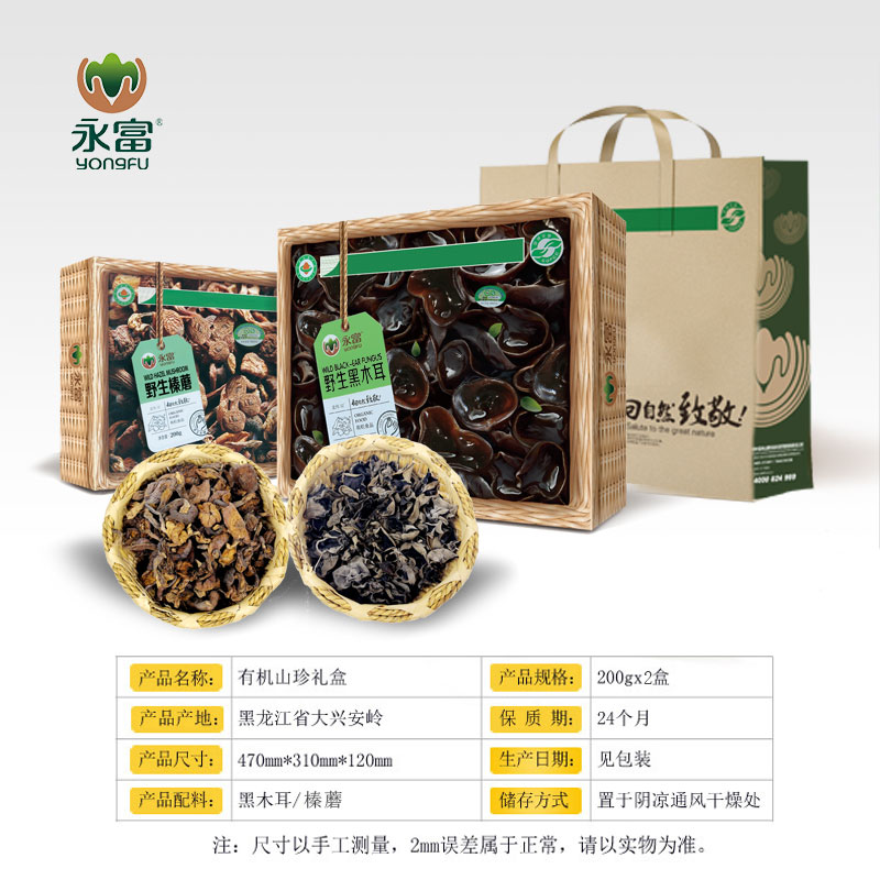 (wild organic) Yongfu black fungus hazelnut mushroom dry goods Northeastern special products New Year delivery gifts 200gX2 boxes