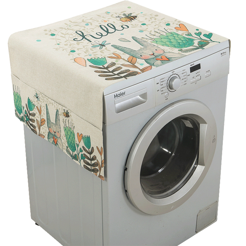 Rabbit cartoon tablecloth coffee table cloth cotton and linen cloth art washing machine cover towel single door double door refrigerator cover cloth