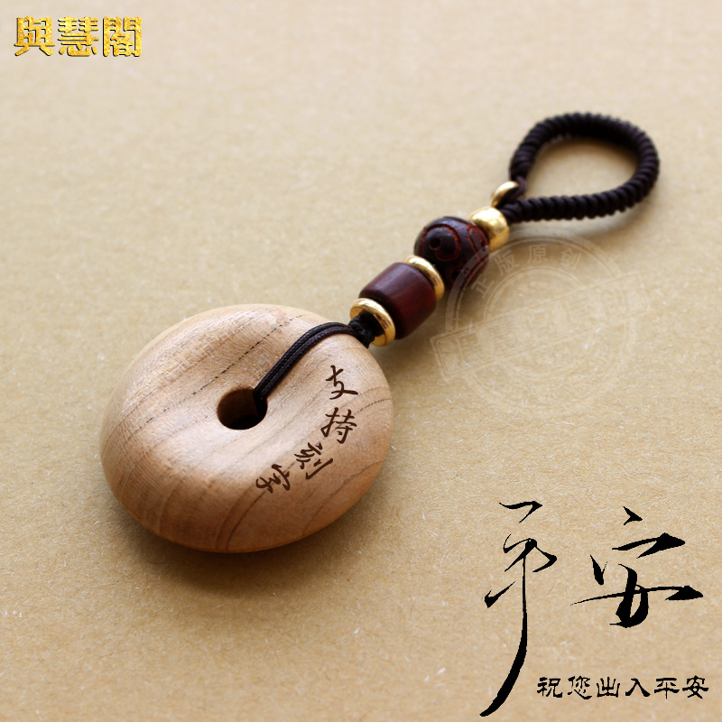 Real peach wood safety buckle key chain pendant men and women carry New Year gift custom lettering
