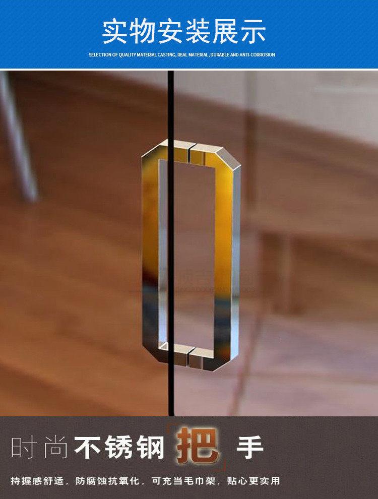 New thickened 304 stainless steel square tube pair fit handle shower room office shop KTV glass door handle
