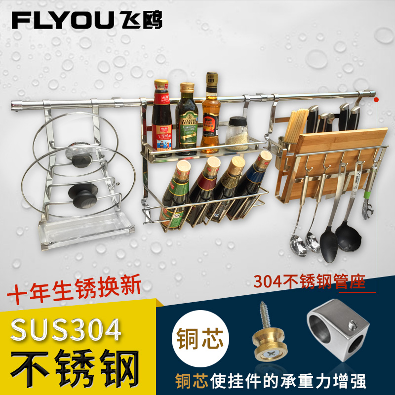 Flying Gull 304 stainless steel kitchen shelf wall hanging knife holder seasoning storage rack kitchen pendant hanging rack dish rack