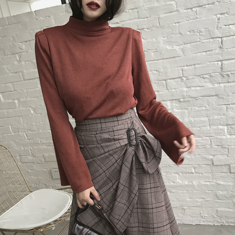 (LAMOBO exclusive) Retro padded shoulder horn sleeve knitted blouse