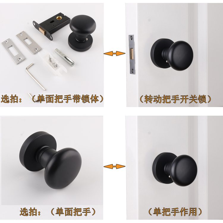Invisible door lock spherical handle European bronze black hidden single face solid promotional background wall American handle