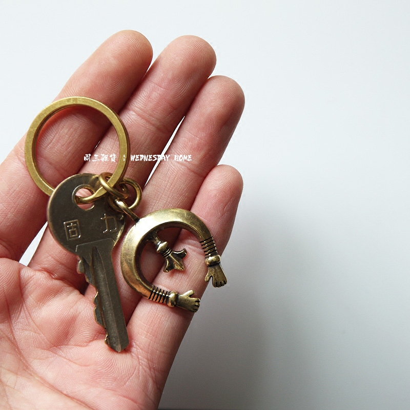 Indian key buckle retro key button handmade key ring hanging decoration amulet pendant brass key clasp ornament
