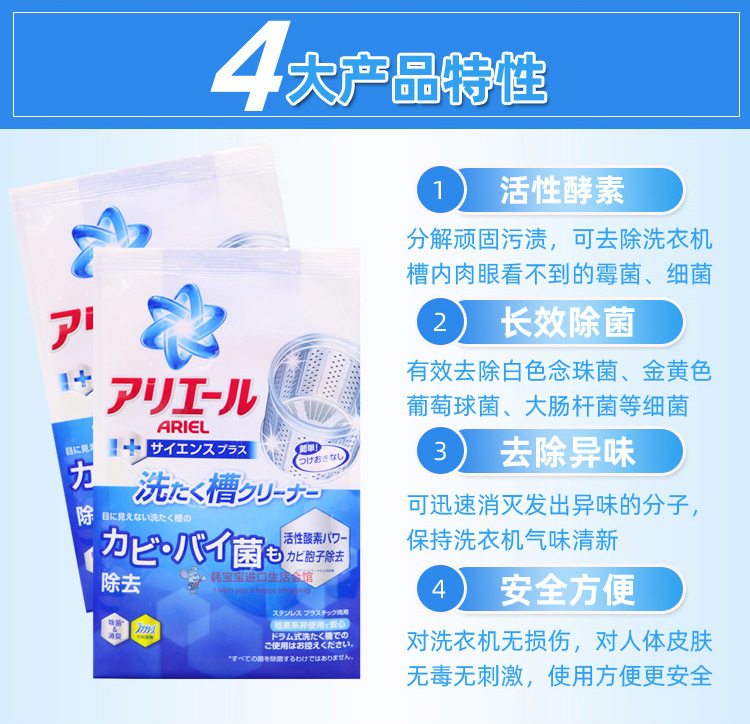 Japanese treasure-returned wave roller drum washing machine groove cleaning agent to defilte powder 3 packs of mildew remover powder