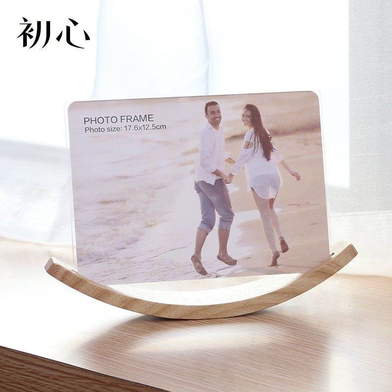 Early Heart Wooden Acrylic Photo Frame Solid Wood Creativity 7 Inch 6 67 Inch Children Wedding photo Book frame Swing Desk Wash Photos