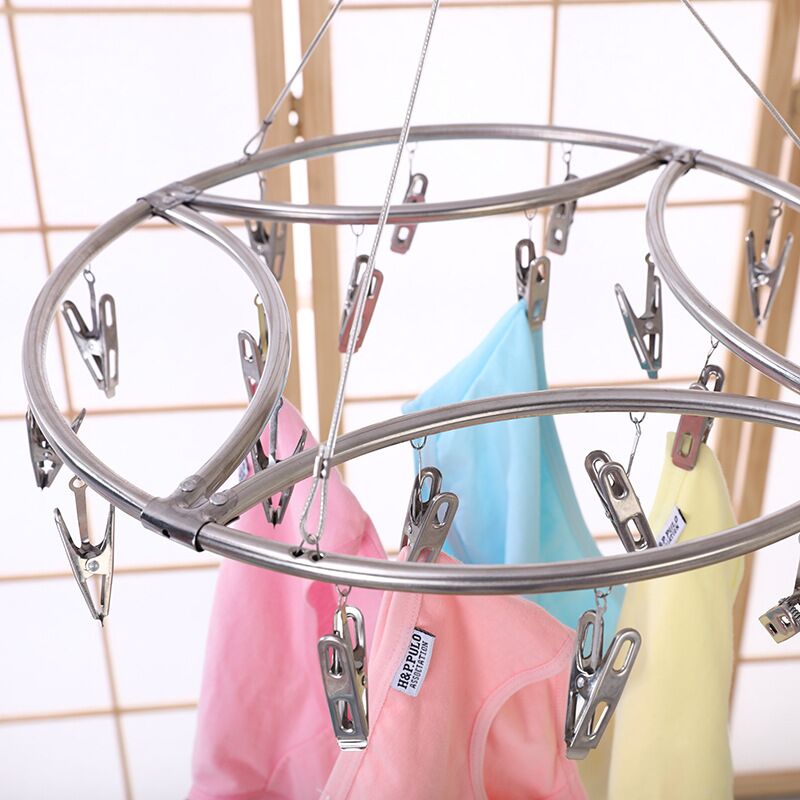 Stainless steel round multi-clamp windproof clothespin clothes rack baby socks rack clothes rack lingerie socks rack