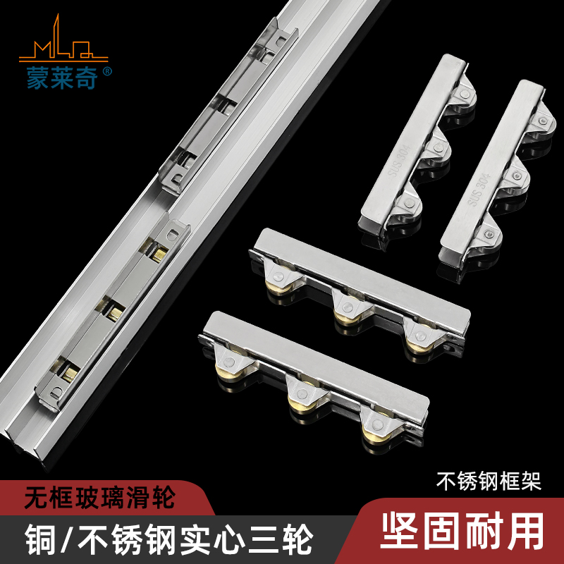 Sliding Door Wheels No Frame Glass Moving Door Pulley Balcony Clip 8mm Centiglass Wheel Exhibition Kitchen Cabinet Stainless Steel Copperwheel-Taobao