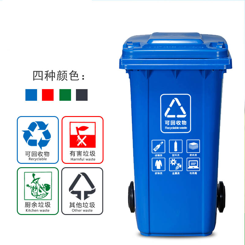 120L four-color classified garbage can large capacity environmental protection outdoor recyclable kitchen with lid kitchen waste merchant dining kitchen wet and dry