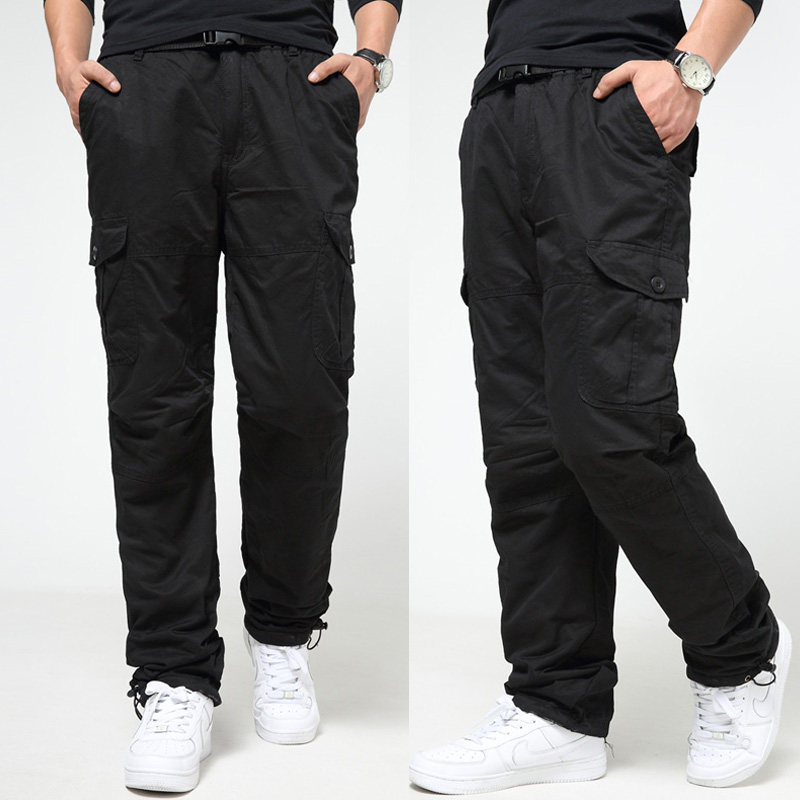 Winter velvet thickened men's cotton pants wear loose cotton casual work clothes multi-pocket large size cold pants