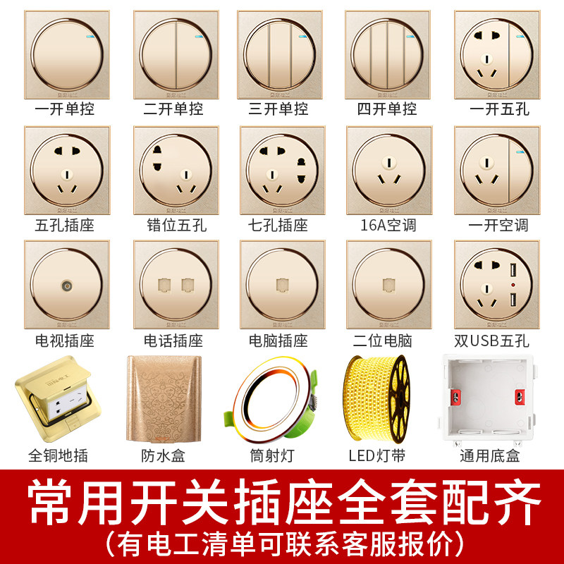 International electrician round switch socket panel 86 type home champagne gold single open light switch power supply one open more