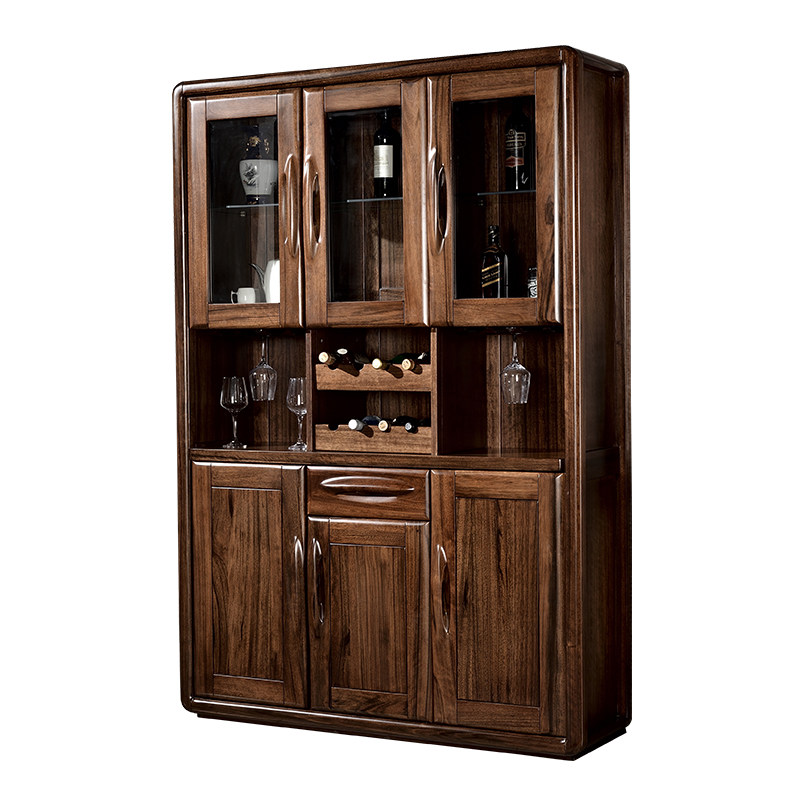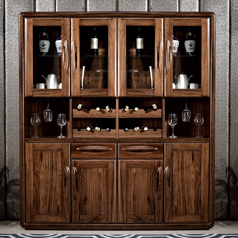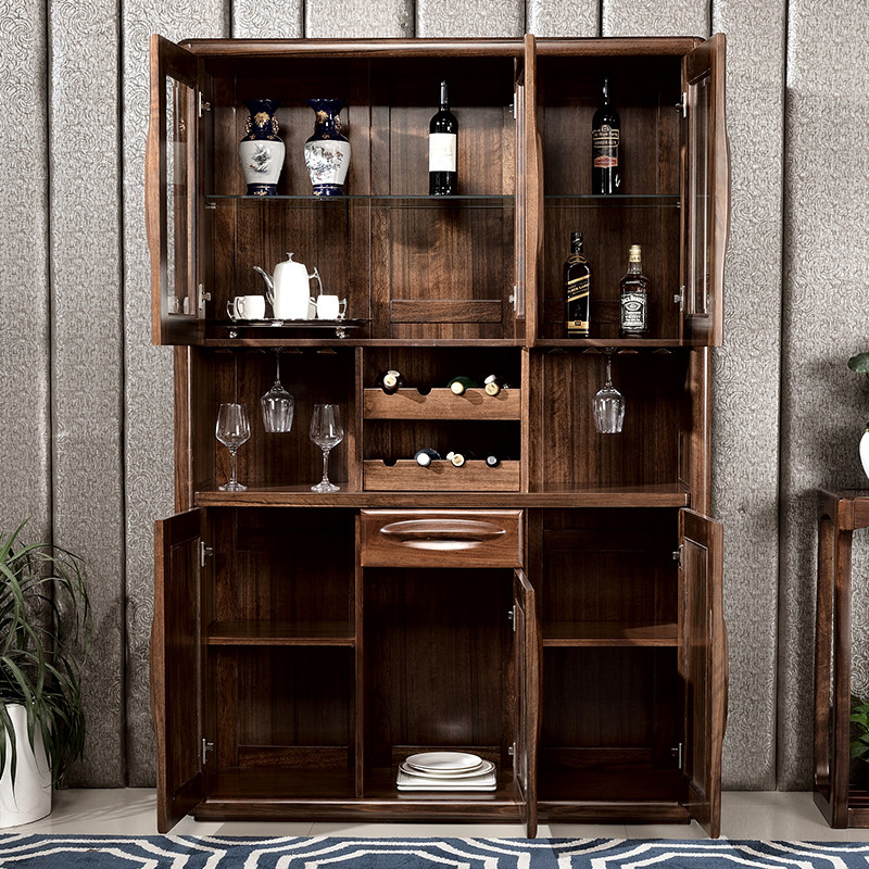 All solid wood wine cabinet three or four door household dining cabinet storage cabinet modern Chinese black walnut wood guest dining room furniture