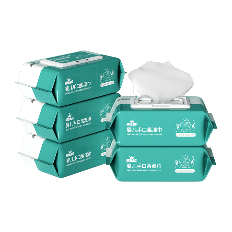 Baby hand-mouth wet towel newborn baby fart with moisturizing child wet tissues 80 pumping * 5 bags with cover portable