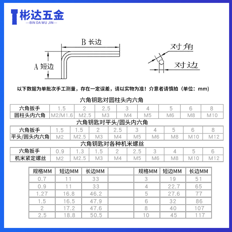 Hexagon wrench set Universal single combination Hexagonal screwdriver tool 6 angle wrench 0 9mm-8mm