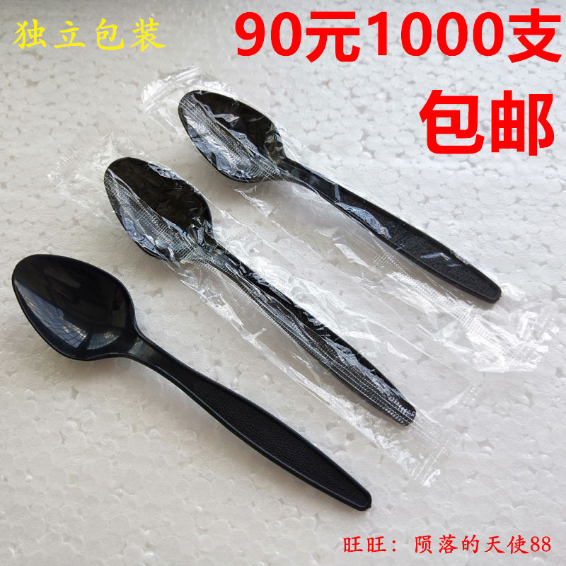 Independent packaging disposable spoon thickened long 14 5CM plastic spoon single branch black 6 inch spoon soup spoon 2000 only