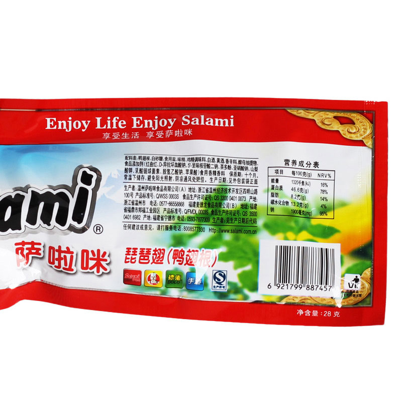 Salamy salami Salami Salame ready-to-eat Brine Spiced Pipa Fin Duck Wing Root 28g * 5 packs