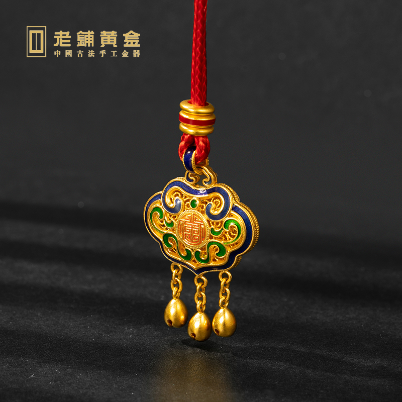 Old Paving Gold Ancient Method Handcrafted Burn Blue Long Life Lock Foot Gold Pendant Gold Necklace Ornaments