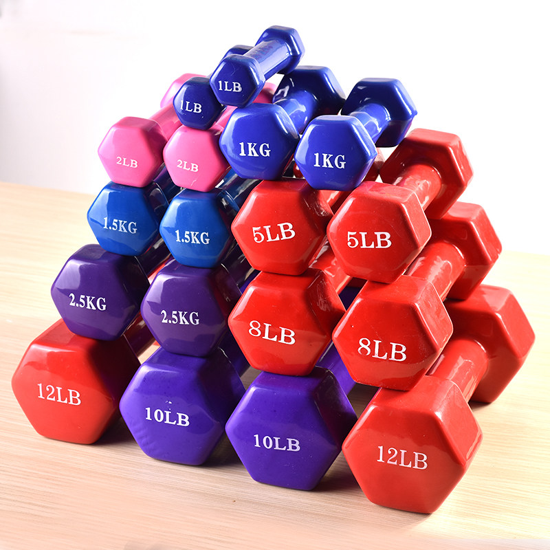 Women's plastic-soaked dumbbells export original order processing inventory 2LB-9LB fitness equipment for arm muscle training colorful plastic package