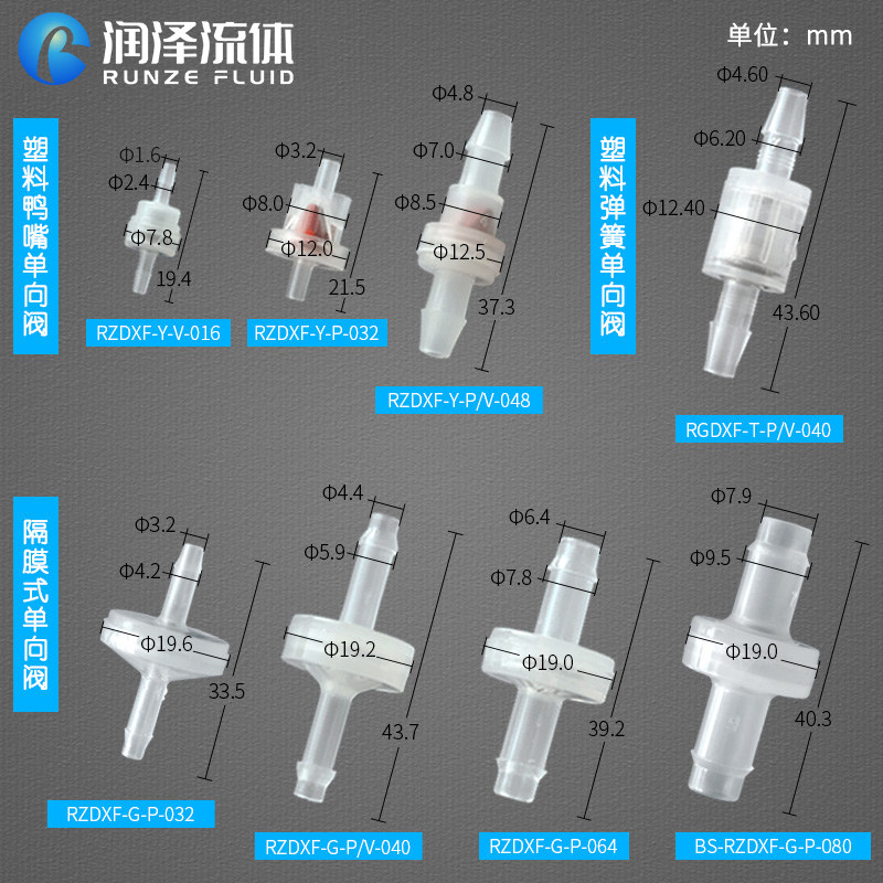 Duckbilled pvdf (public system 1 6mm) duckbilled pp (public system 3 2mm) duckbilled pvdf (metric 4 8mm) diaphragm pp (metric 3)