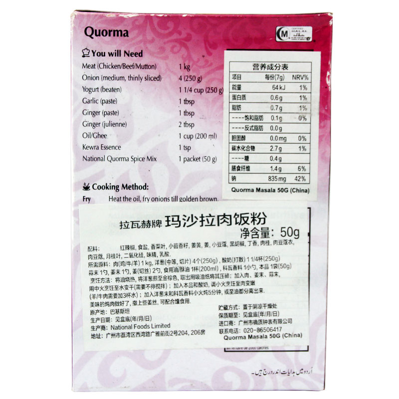 National Quorma Marsala meat meal powder 50g Pakistani seasoning-Taobao