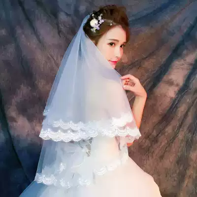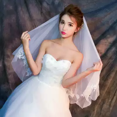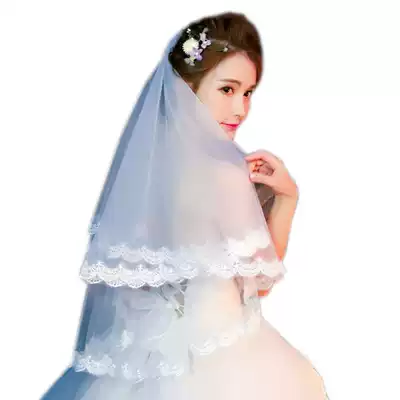 Bride wedding veil gloves skirt brace accessories white double-layer veil Korean wedding accessories three-piece set