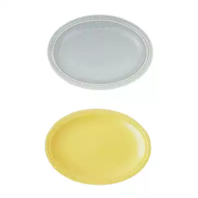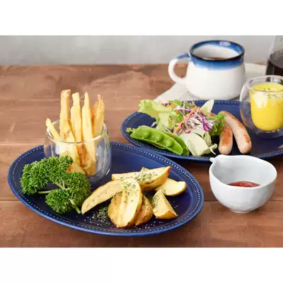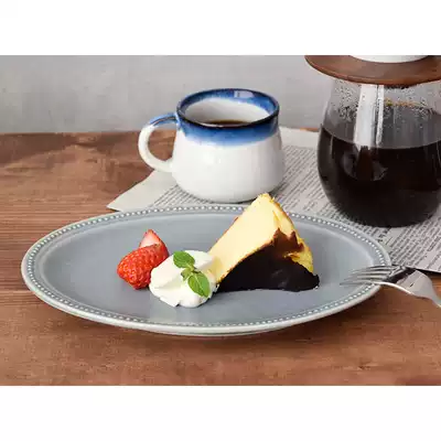 Japanese-made imported Mino-yaki underglaze color oval bead-edged dinner plate Dessert spaghetti breakfast steamed fish plate