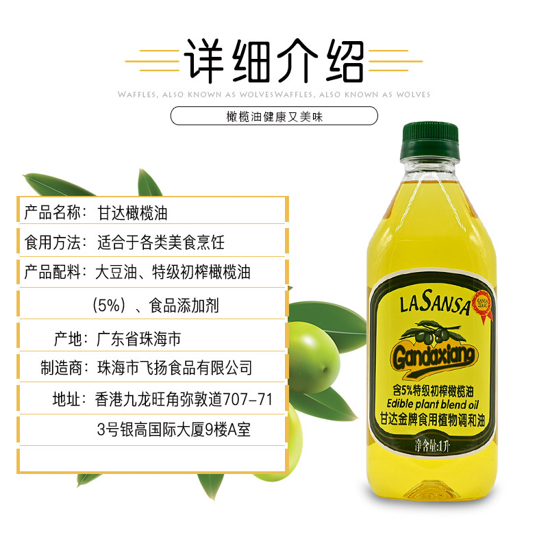 National 1L T Grade Ganda Olive Oil Edible Tone and Oil Original Salad Salad Salad Salad With Salad Dressing