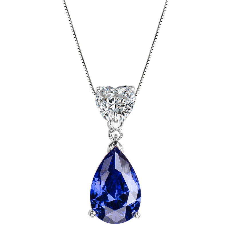 Sapphire Necklace 925 Silver Heart Drop Gemstone Necklace Clavicle Chain Female Tanzanite Sapphire Pendant