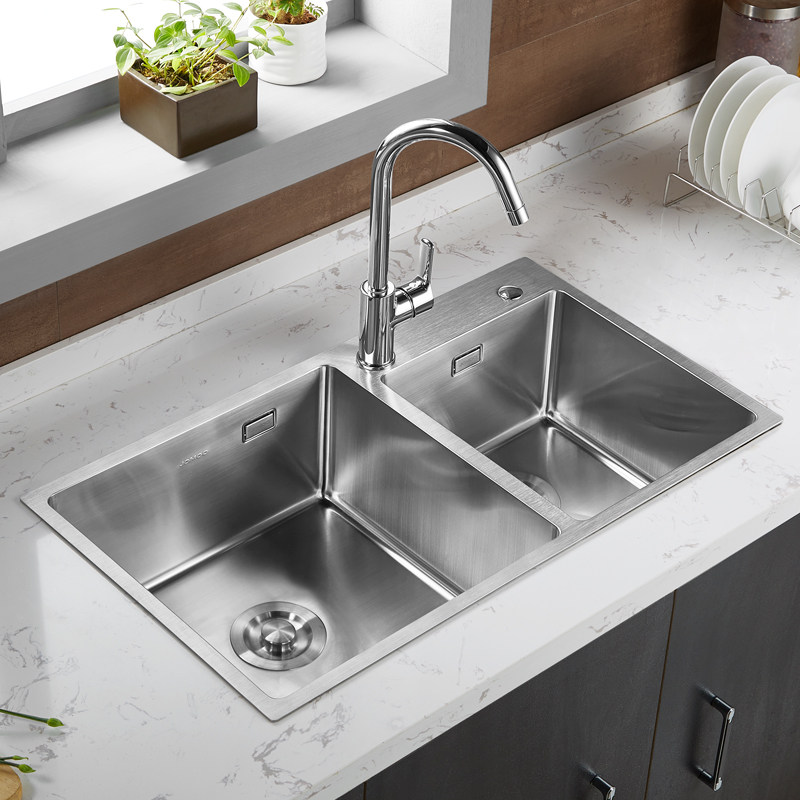 Nine Shepherd 304 Stainless Steel Sink Wash Vegetable Basin Wire Drawing Thickened Double Sink Manual Double Sink Washing pool Handmade slot 06159