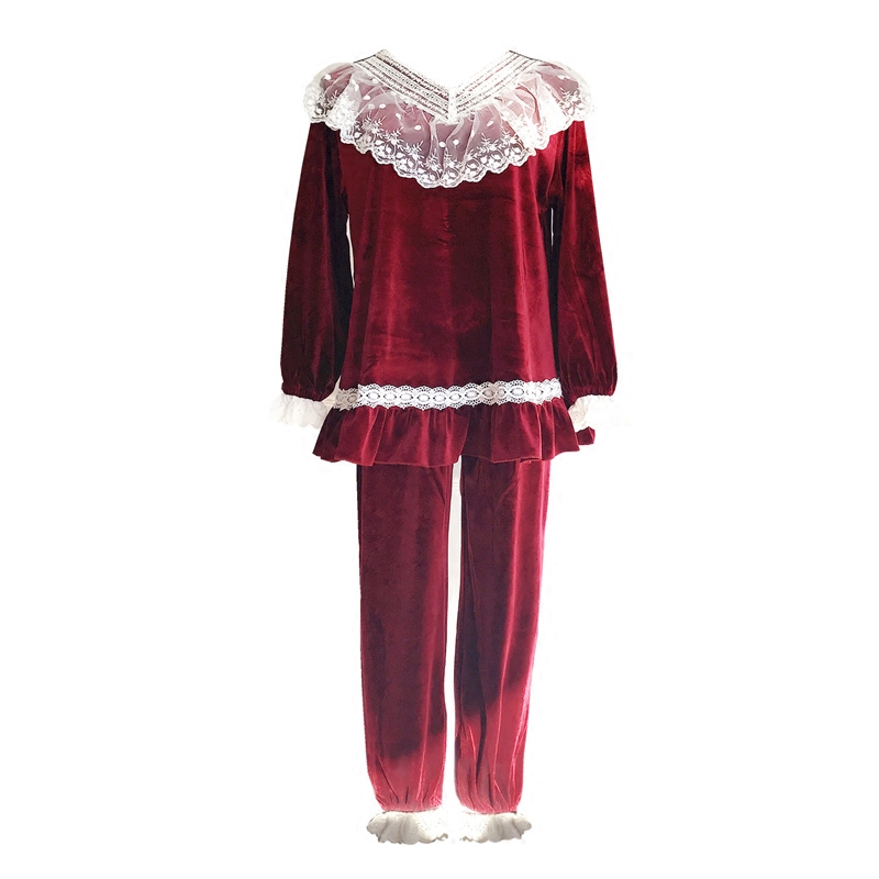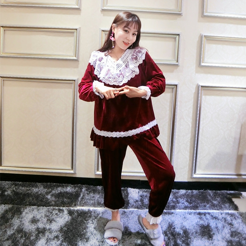Autumn and winter golden velvet plus velvet thickened Korean lace cute slim size fat mm pajamas home clothes