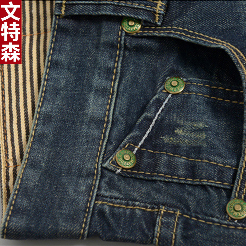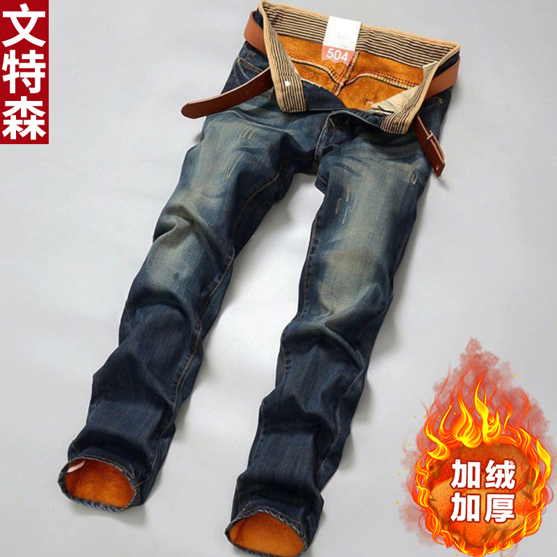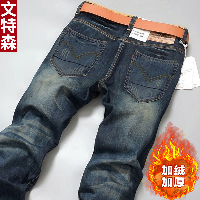 Vintson Winter Men plus jeans straight tube loose and thick casual warm men pants in autumn and winter pants