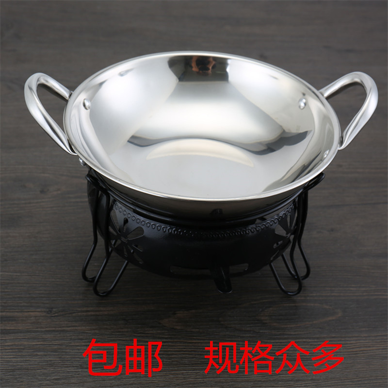 Thickened Stainless Steel Paparazzi Bar Tripod Commercial Small Hot Pot Pan Zipan Alcohol Stove Hotpot Pan Shallow Bottom Flat-bottomed Suit