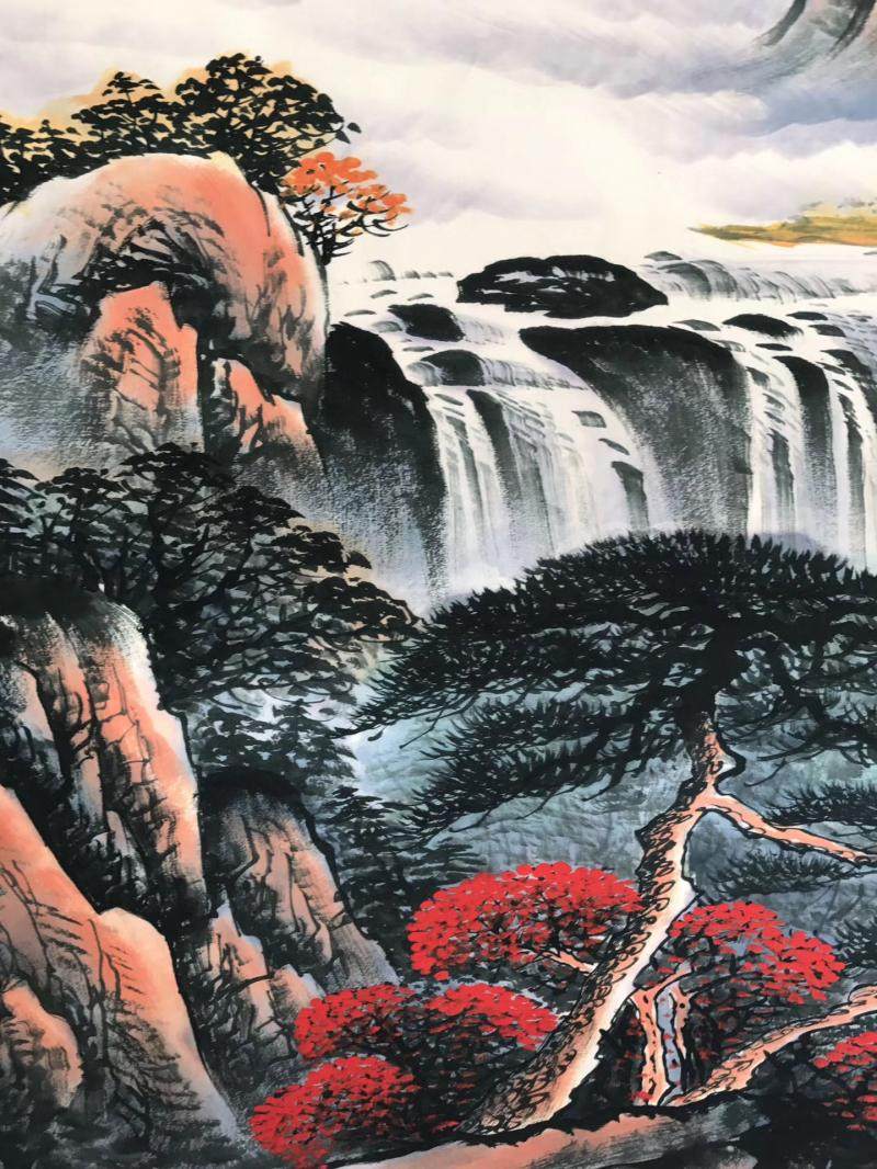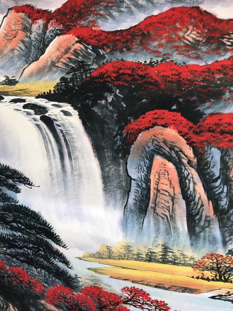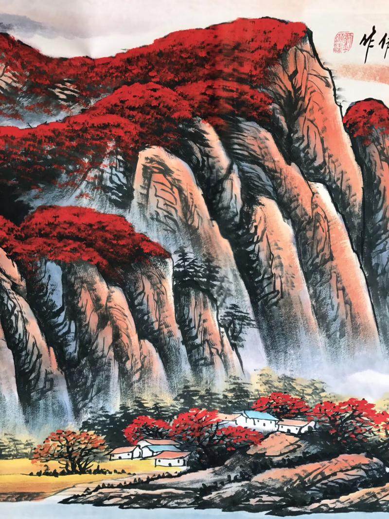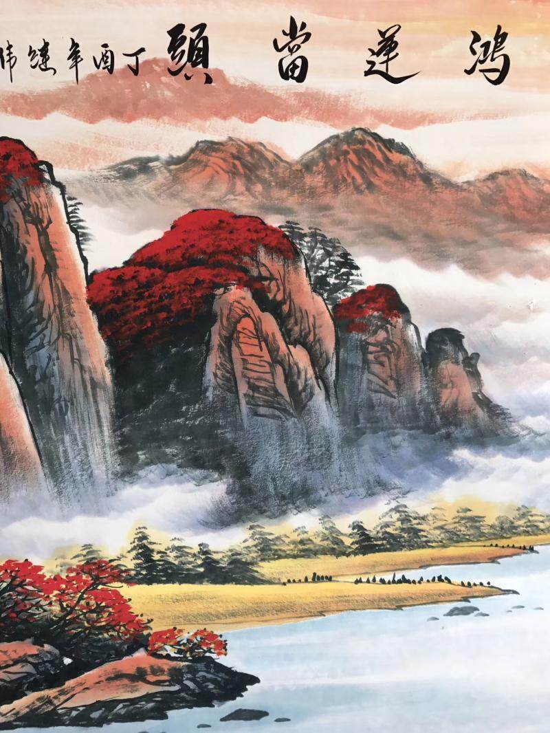 Hongyun When the Head State Painted Red Mountain Water II Write the Landscape Painting Gold Full of Poly Basin Living Room Decoration Painting