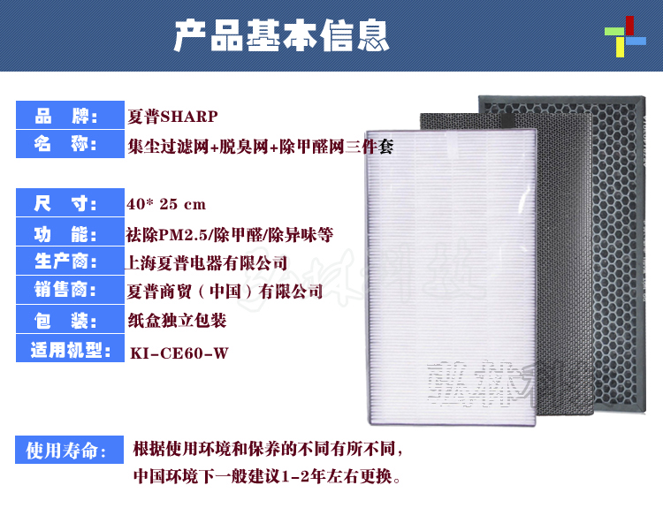 Sharp air purifier filter KI-CE60-W KJF401DX W dust collection, deodorization and formaldehyde removal filter element